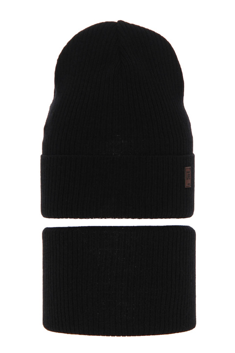 Jongens winter set muts en sjaal, zwart, met garen pompon, Wiliam