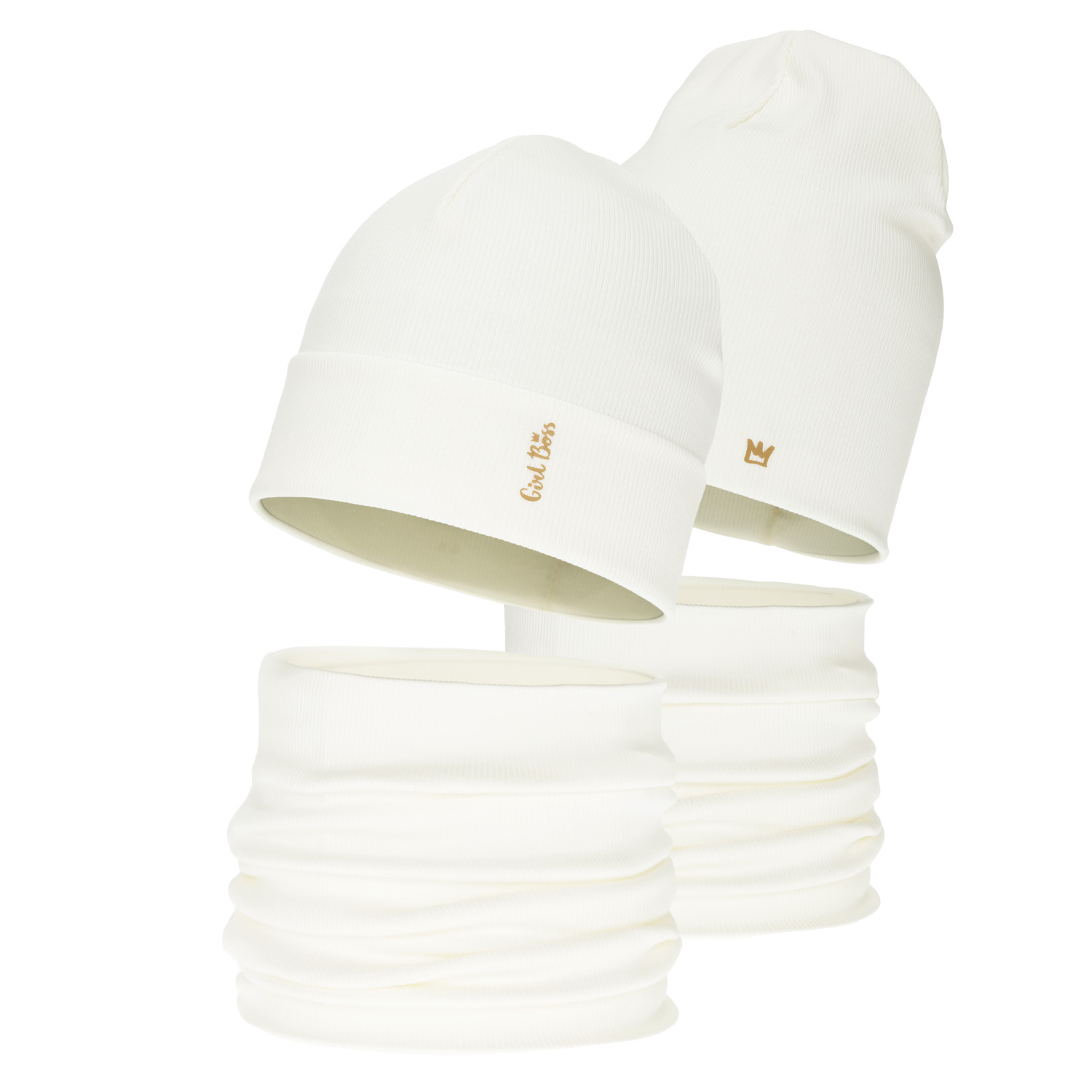 Meisjes herfst/lente set (muts en buissjaal), katoenen, crème, Carina