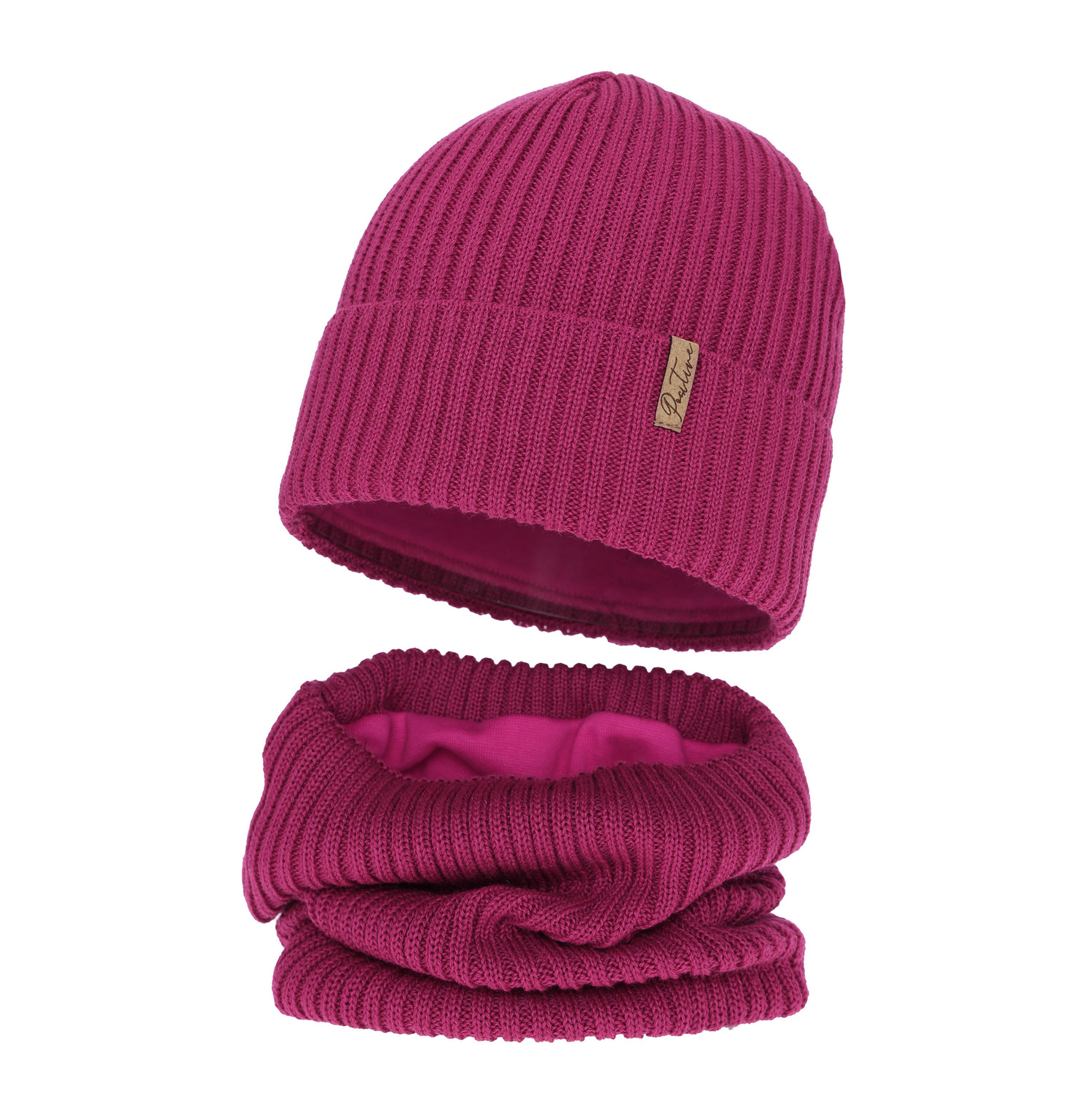 Meisjes winter set (muts en buissjaal) gevoerd met fleece, amarant, met merinowol, Odette